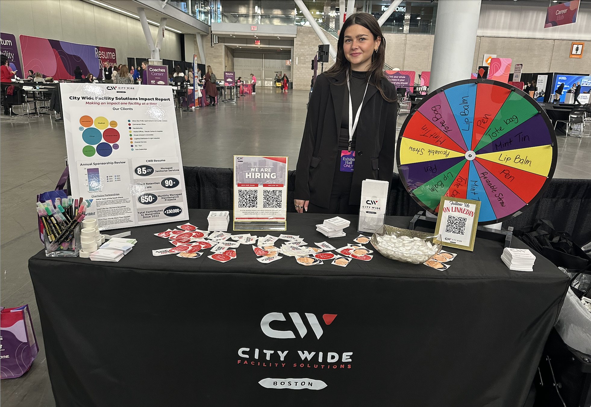 As part of our sponsorship, we hosted an exhibitor booth centered around our theme: Impact. We wanted to create an interactive and meaningful experience for attendees, so we invited women to reflect on the people who have made a difference in their lives. At our booth, participants wrote down the names of those individuals on notecards and added them to our large “Impact” display. Watching the board fill up throughout the day was a powerful visual reminder of the influence we all have on one another.
